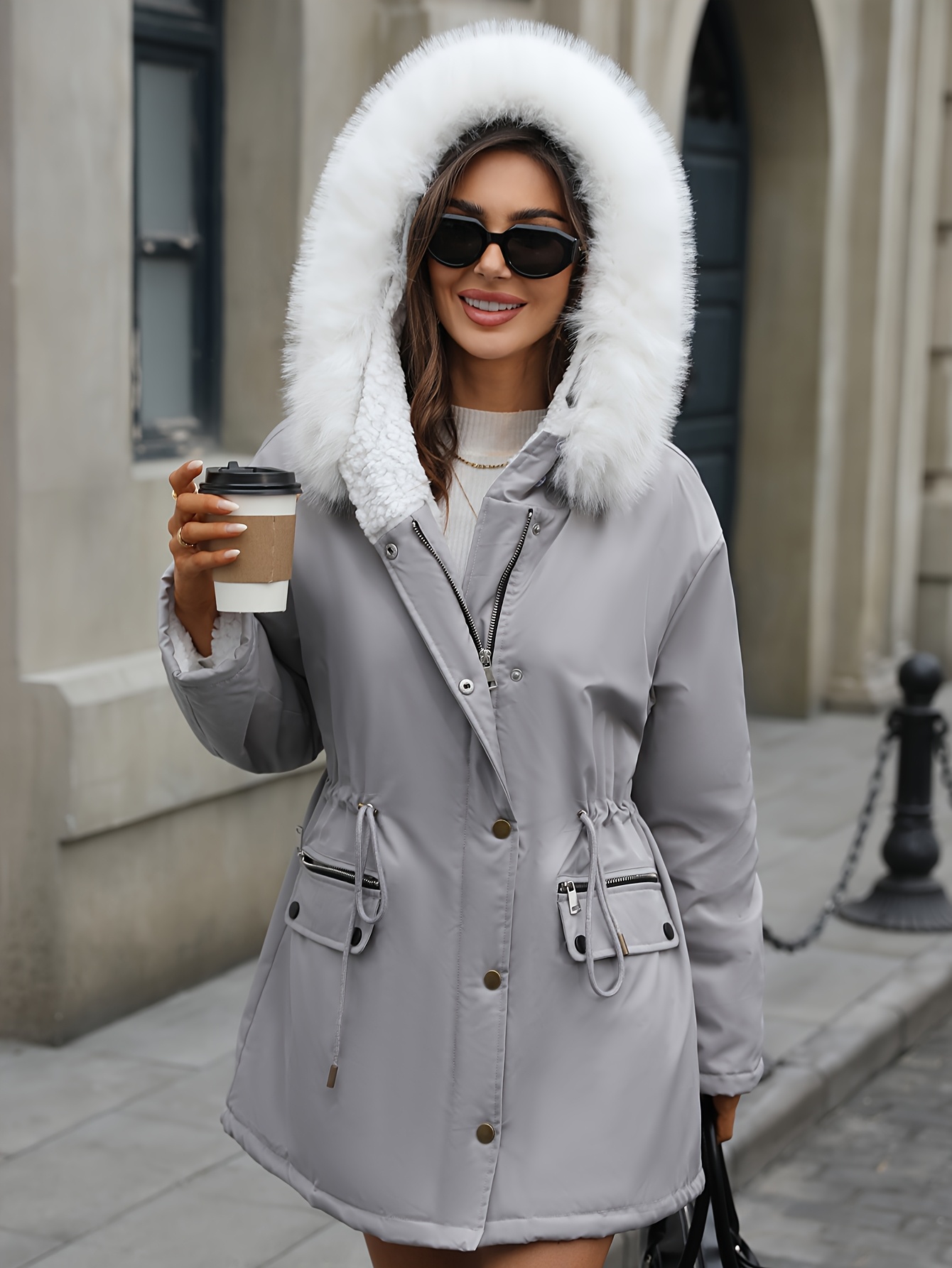1pc Winter Fashion Hooded Casual Coat, 100% Polyester Solid Color Long Sleeve Non-Stretch Woven Jacket with Zipper, Hooded Collar, Regular Fit for Outdoor Leisure
