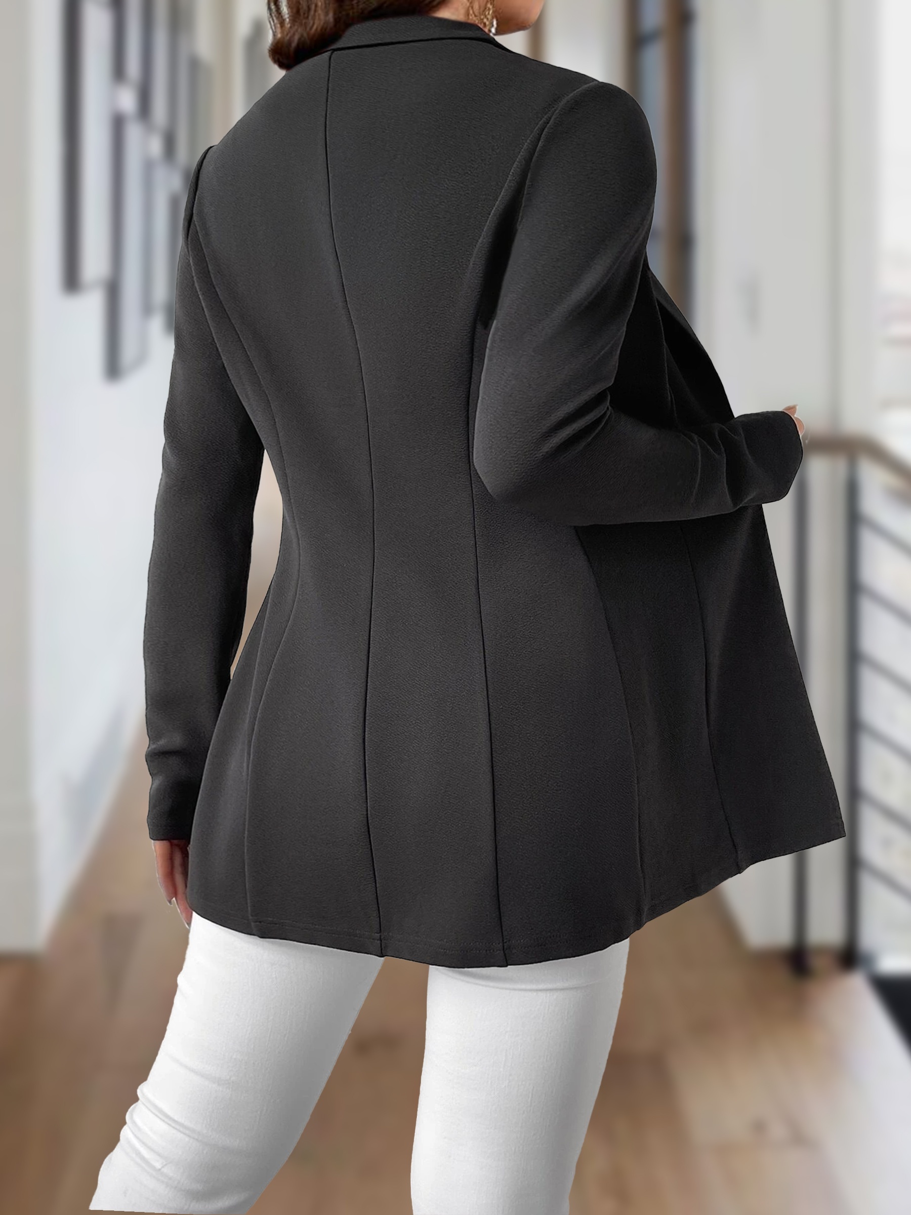 Elegant Plus Size Women's Blazer - Soft Knit, Single Button, Lapel Collar, Solid Color, Machine Washable - Perfect for Fall