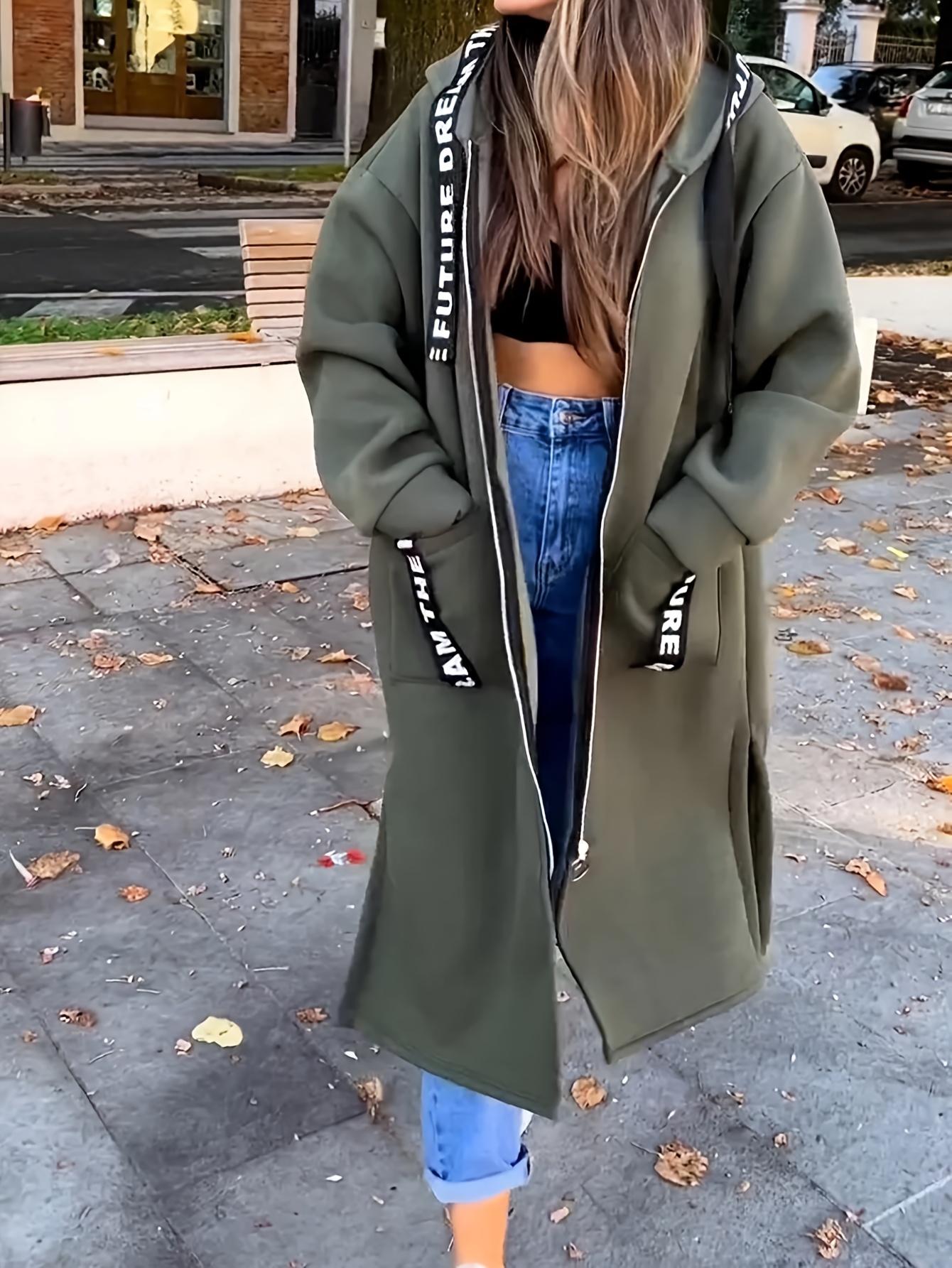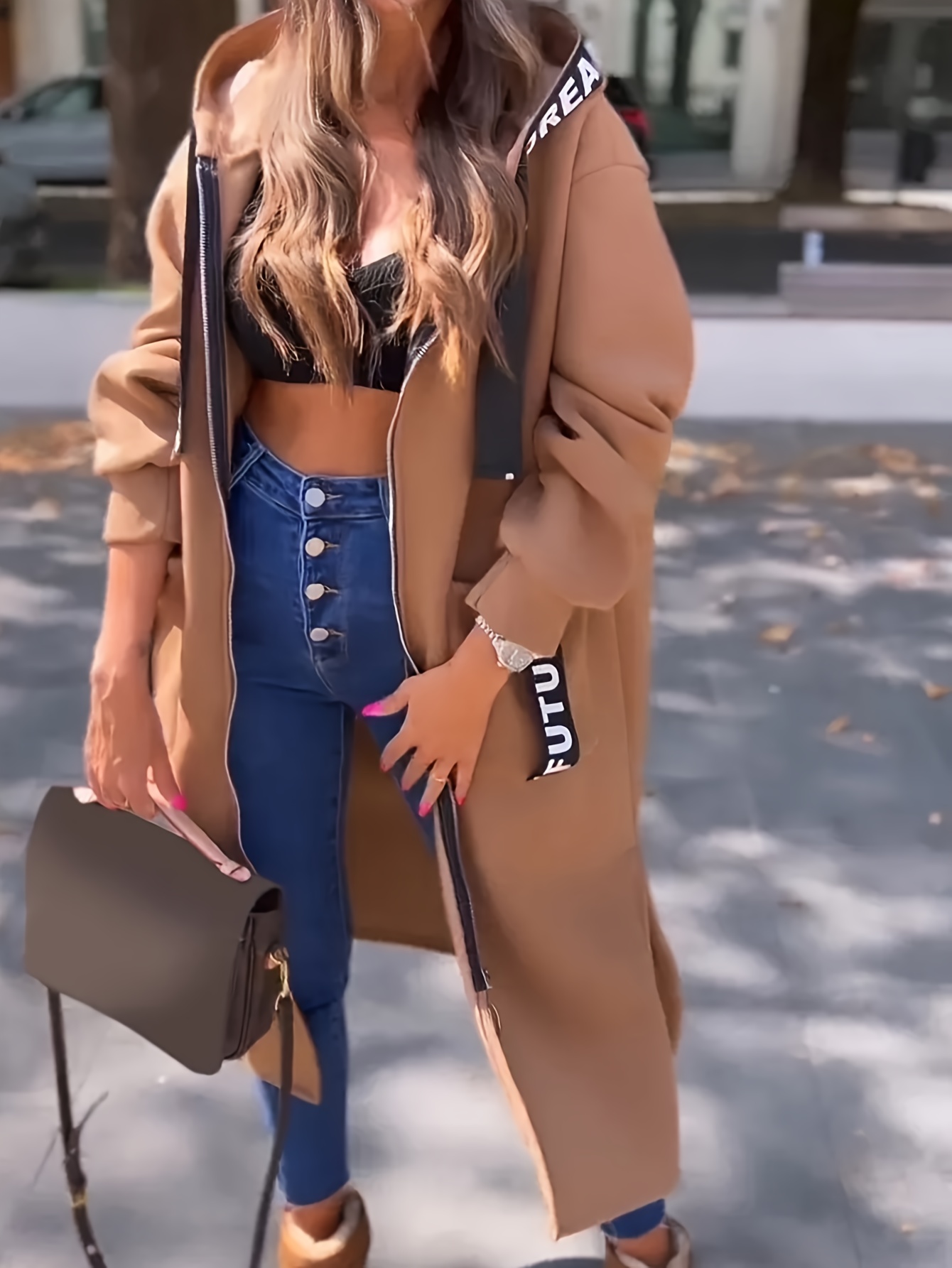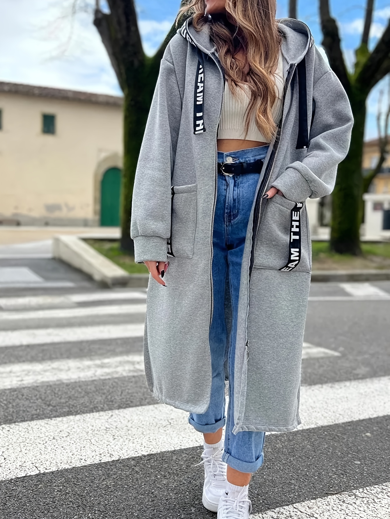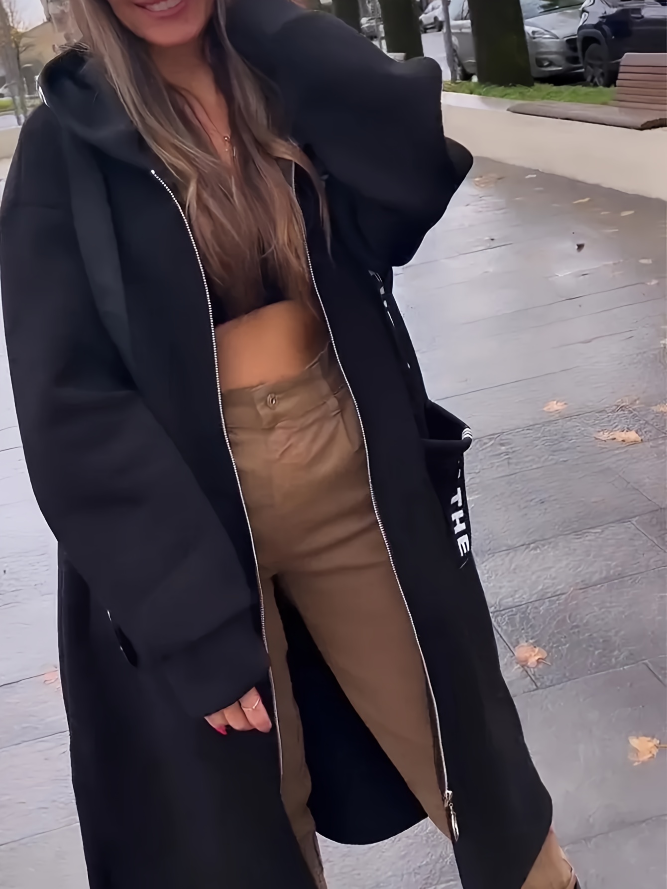 Large Size Women's Hooded Full-Zip Sportswear Jacket - Windproof & High Quality Long Sleeve Outerwear, Mid-Stretch Semi-Translucent Fabric, Machine Washable, Autumn Casual & Athletic Coat for Gym, Running Errands, Casual Attire (Solid Color)