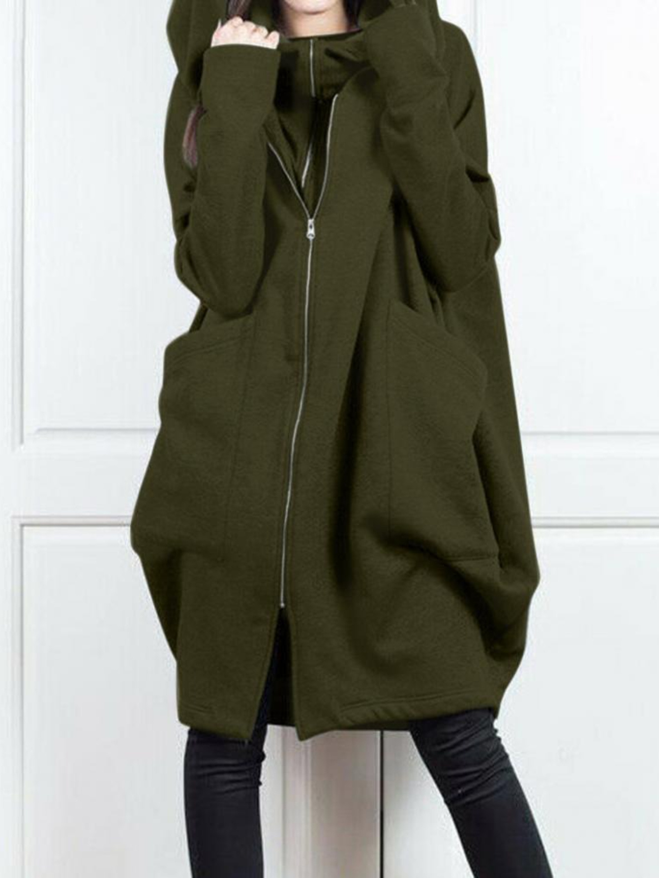 Plus Size Women'S Hooded Zip-Up Jacket - Long Sleeve Two-Piece look with Front Pockets, Olive Green, Non-Stretch Fabric for Fall/Winter, Layering Essential Outerwear for Everyday & Formal Outfits, Winter Hooded Jacket, Casual Winter Wear, Durable Winter Wear, Fall Fashion, Stylish Hoodie, Quality Stitching, Outerwear Piece, Fashion Lovers