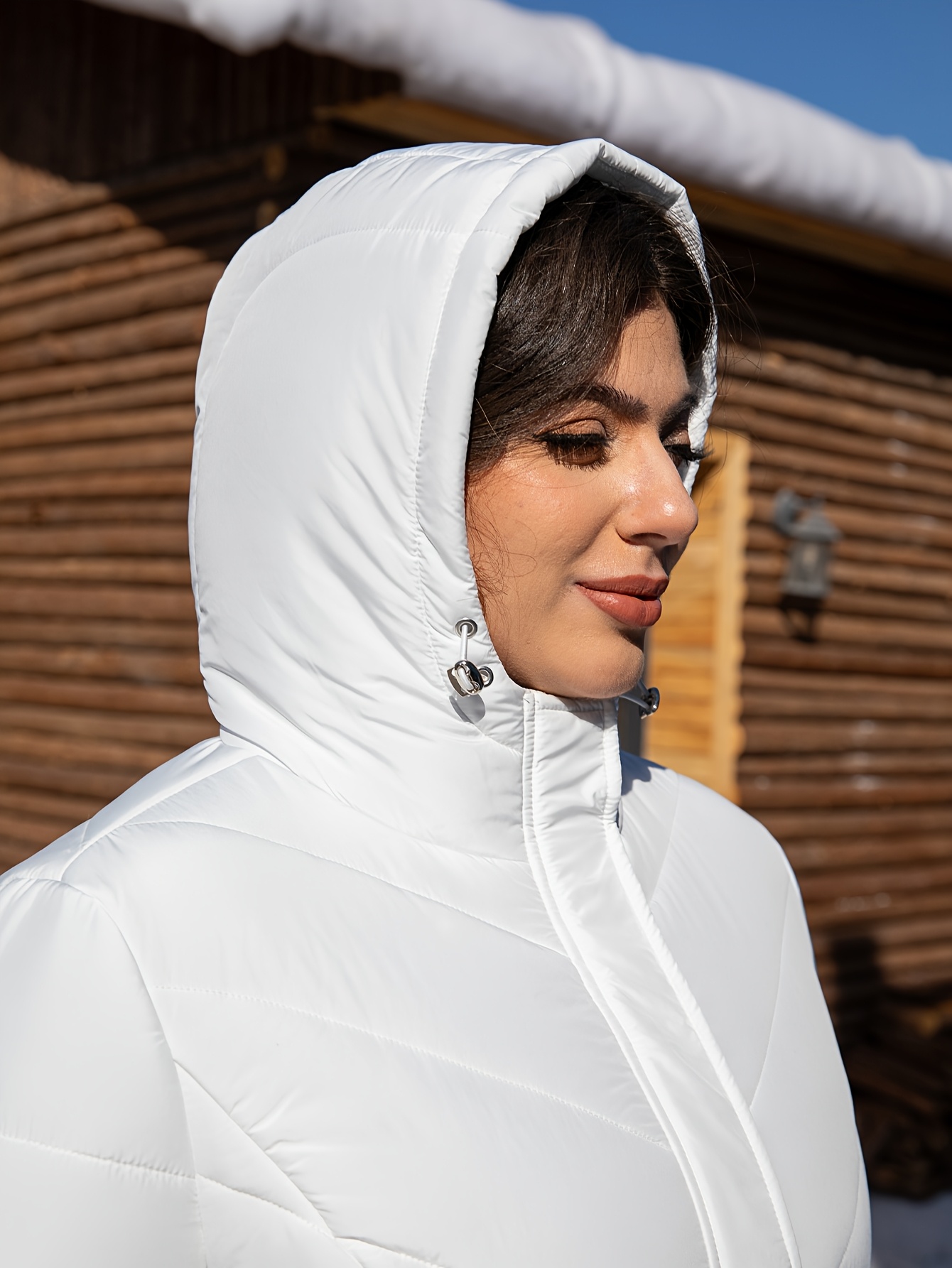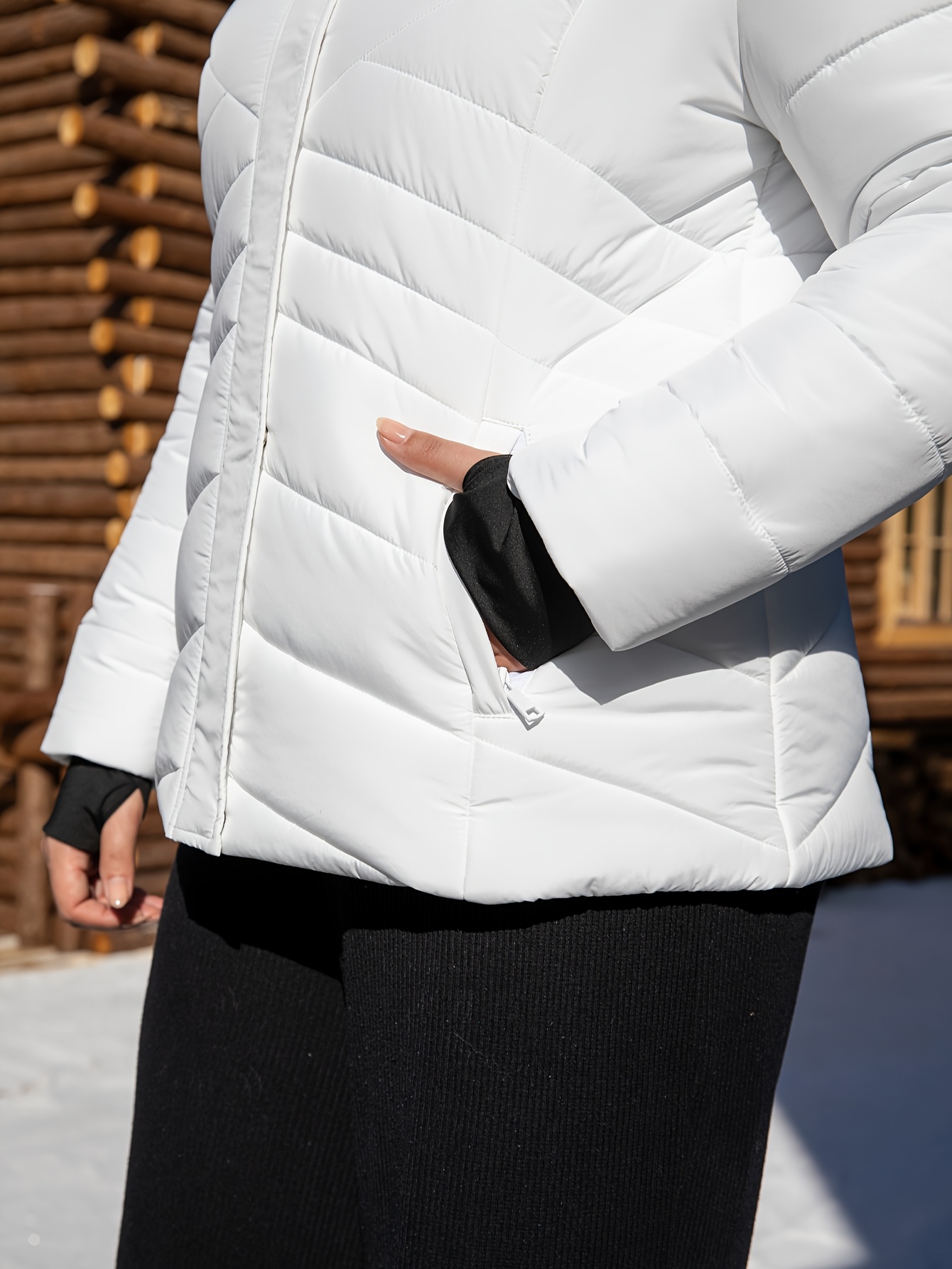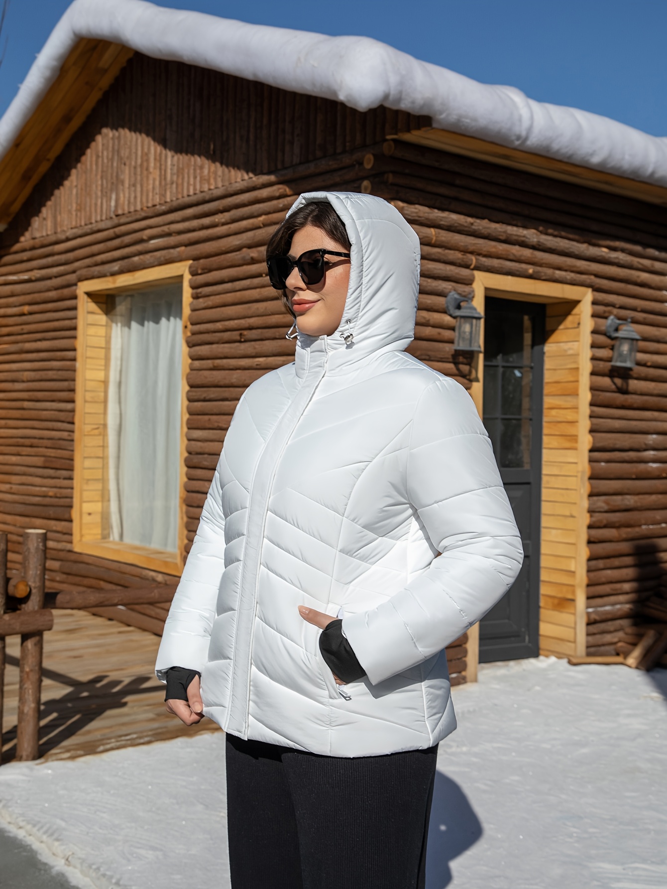 Women'S Plus Size Hooded Jacket, Casual Polyester 100% Woven Coat, Solid Color Fall/Winter Warm Windproof Outerwear with Pockets