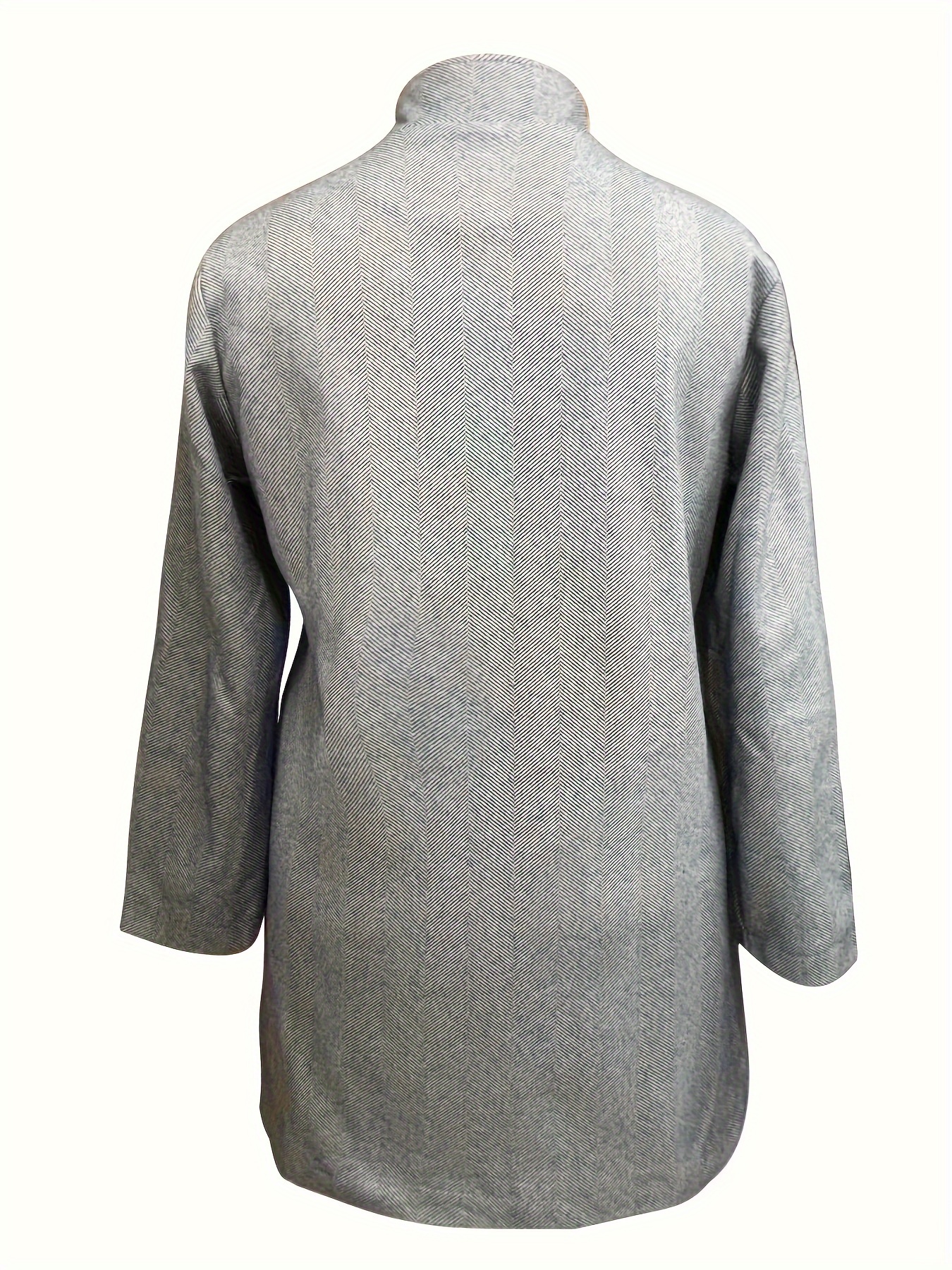 Elegant Plus Size Houndstooth Blazer for Women - Polyester Knit Fabric with Lapel Collar, Raglan Long Sleeve, Regular Fit Fall/Winter Jacket
