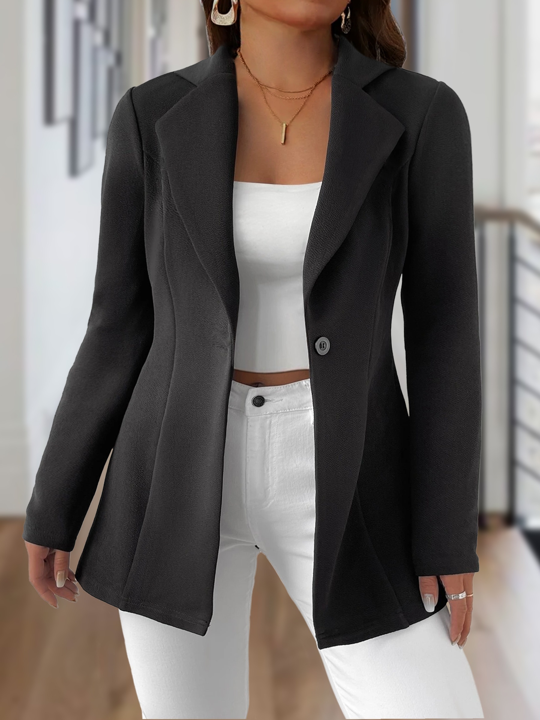 Elegant Plus Size Women's Blazer - Soft Knit, Single Button, Lapel Collar, Solid Color, Machine Washable - Perfect for Fall