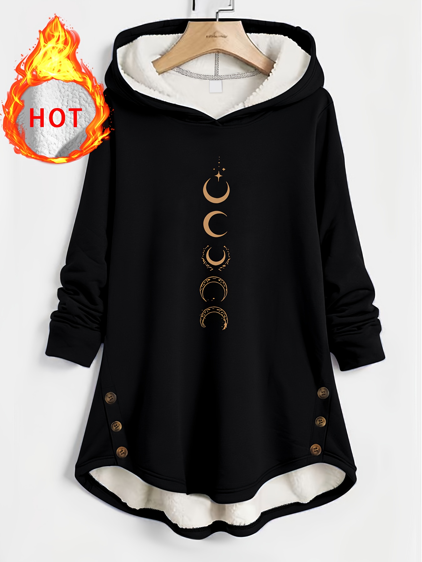 Plus Size - Women'S Oversized Hooded Coat - Winter Warmth with Lined Hood, Letter Print & Golden-Tone Button Closure, Soft Durable Fabric, Machine Washable