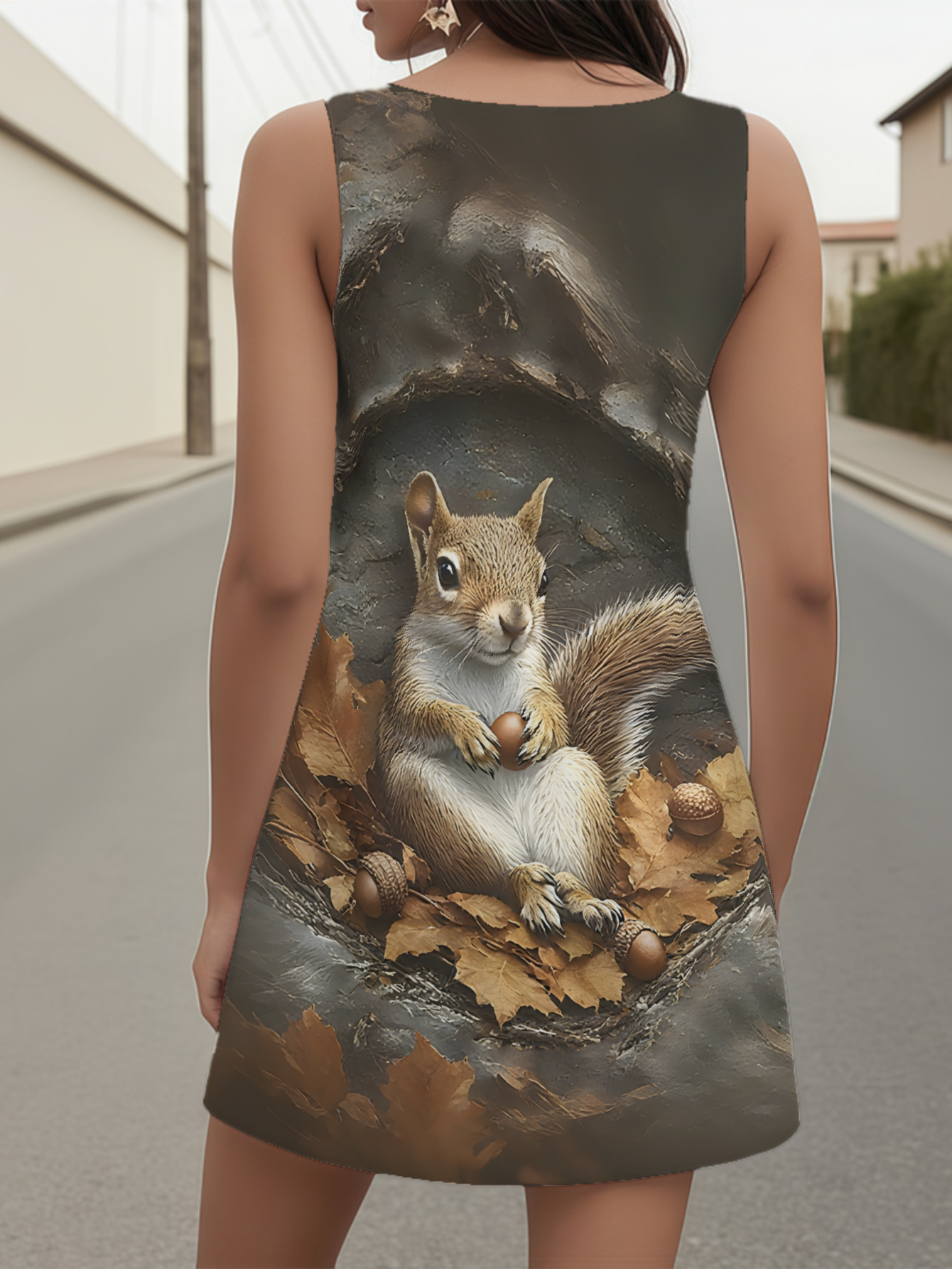 Women's Plus Size Sleeveless Pajama Dress - Cute Animal Sleepwear & Lounge, Loose Fit Shorts, Machine Washable All-Season Nightgown for Women (No Formality Needed), Comfortable Pajamas, Playful Squirrel Print, Durable Loungewear
