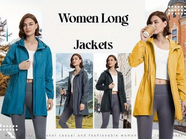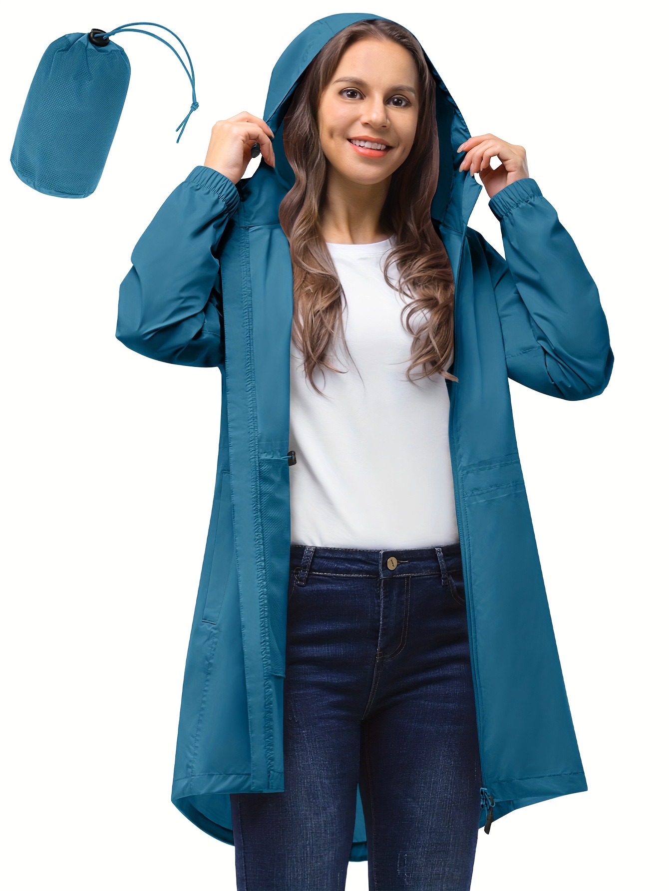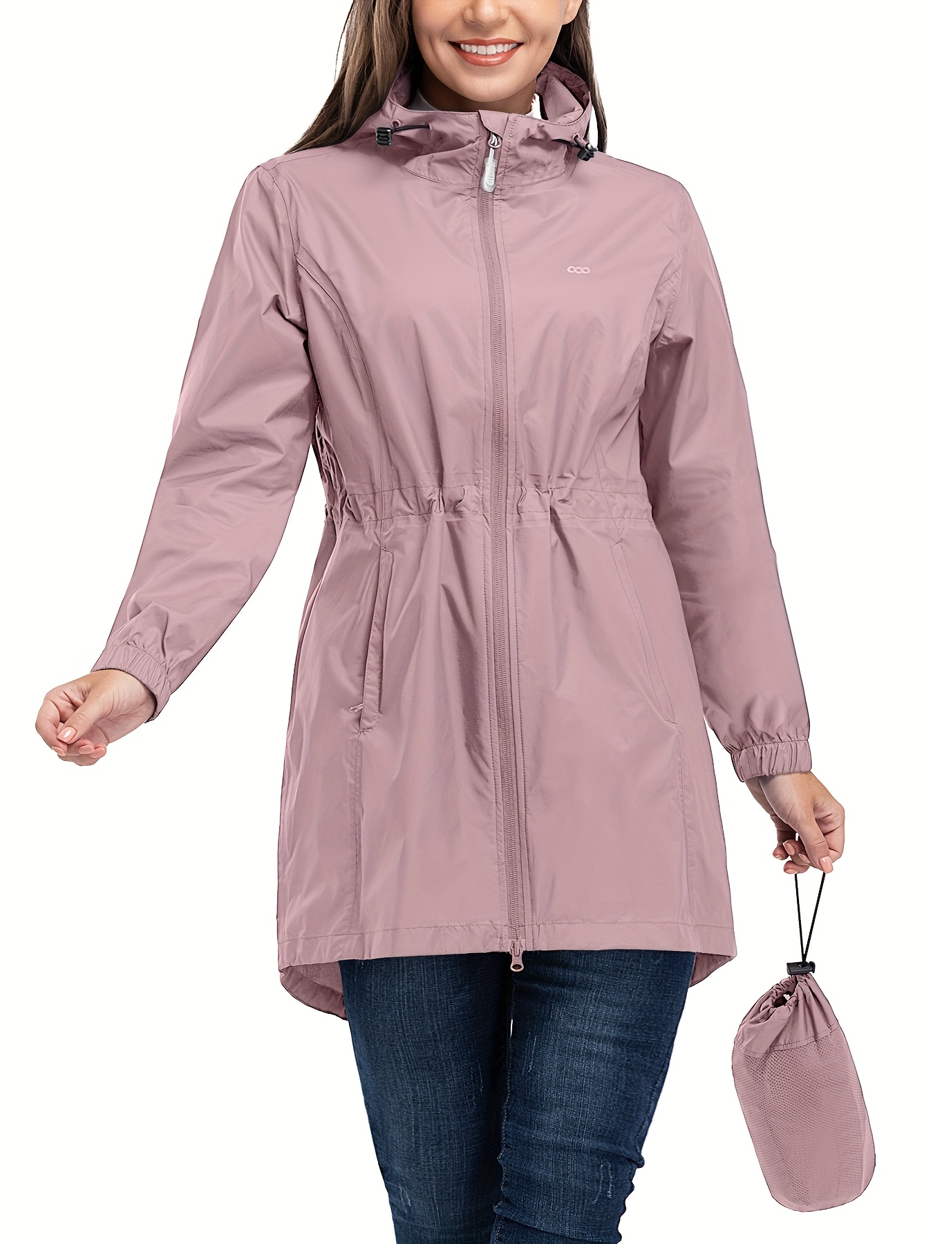 [33,000ft Windbreaker] Lightweight Women's 33,000ft Windbreaker Long Coats | Packable Jacket with Hood Trench Coats for Golf Hiking Travel | Plus Size