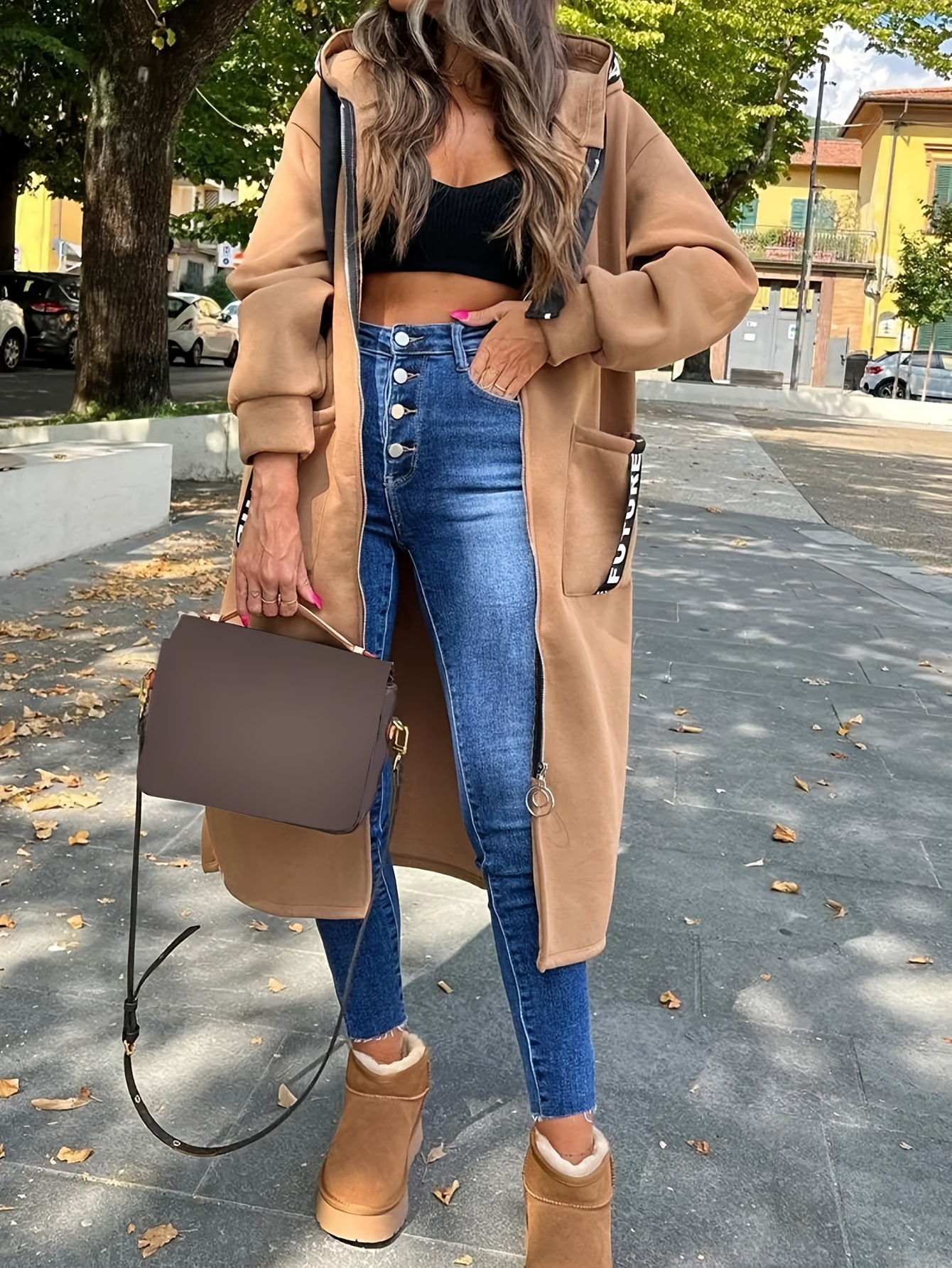 Large Size Women's Hooded Full-Zip Sportswear Jacket - Windproof & High Quality Long Sleeve Outerwear, Mid-Stretch Semi-Translucent Fabric, Machine Washable, Autumn Casual & Athletic Coat for Gym, Running Errands, Casual Attire (Solid Color)