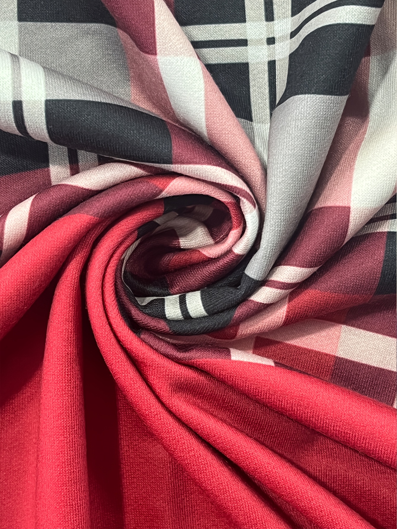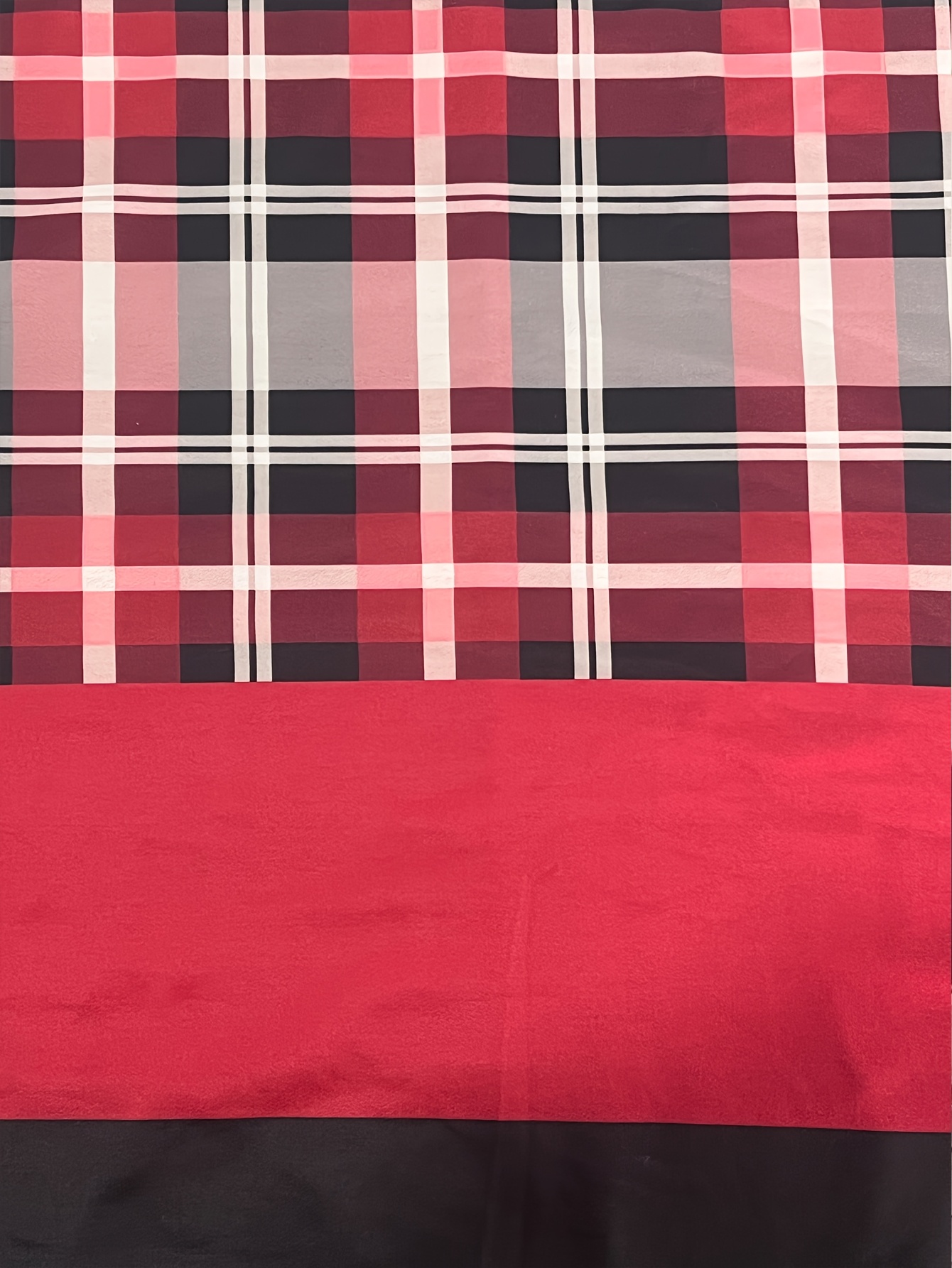Women's Plus-Size Geometric Color Block Hoodie - Red & Black Plaid Print Pullover with Front Pockets, Cozy Long Sleeve Casual Sweatshirt for All-Season Comfort, Streetwear Style, Trendy Design, Durable Construction, Comfort Seekers