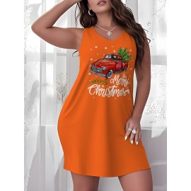Women's Plus Size Sleeveless Pajama Dress - Cute Animal Sleepwear & Lounge, Loose Fit Shorts, Machine Washable All-Season Nightgown for Women (No Formality Needed), Comfortable Pajamas, Playful Squirrel Print, Durable Loungewear